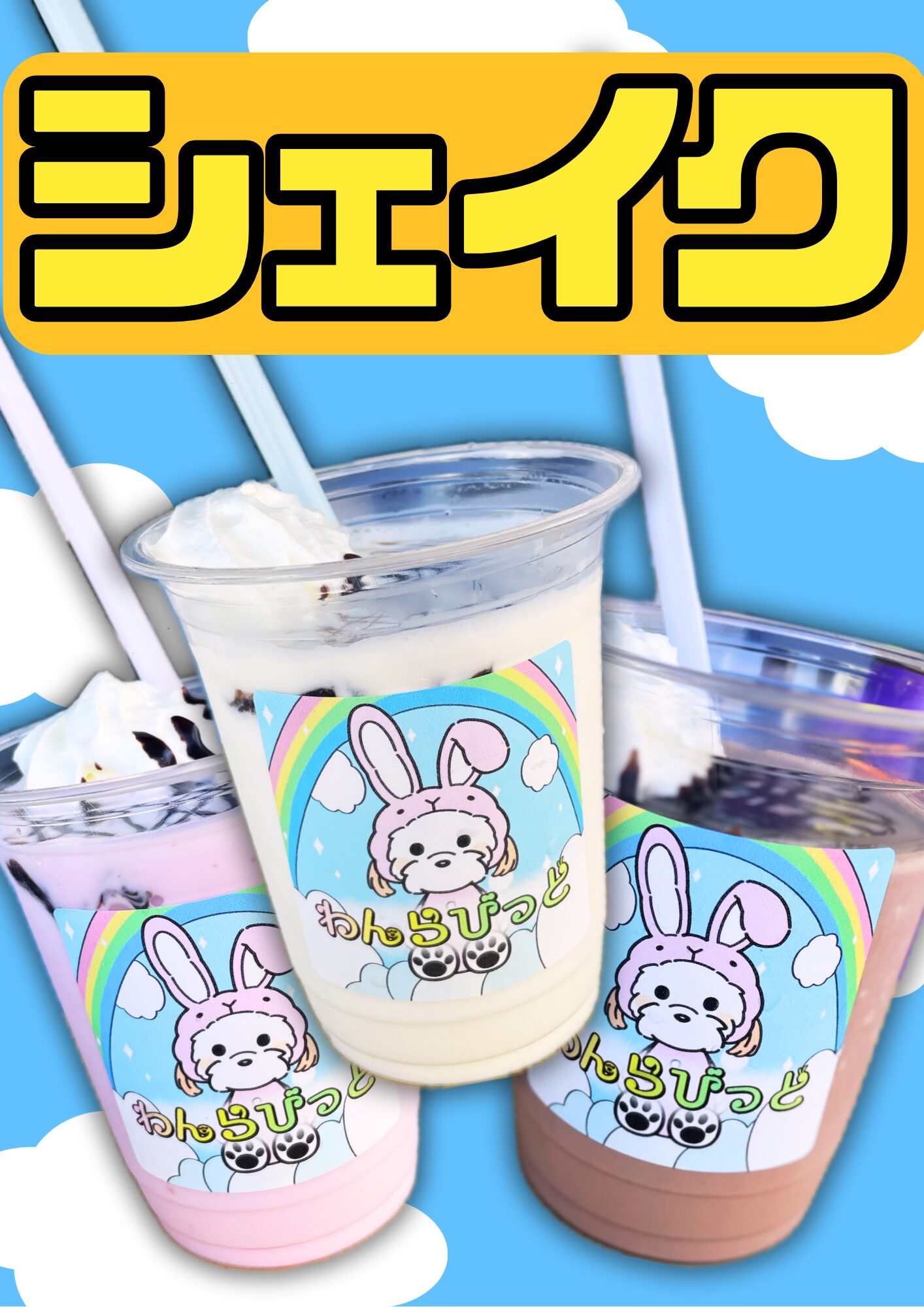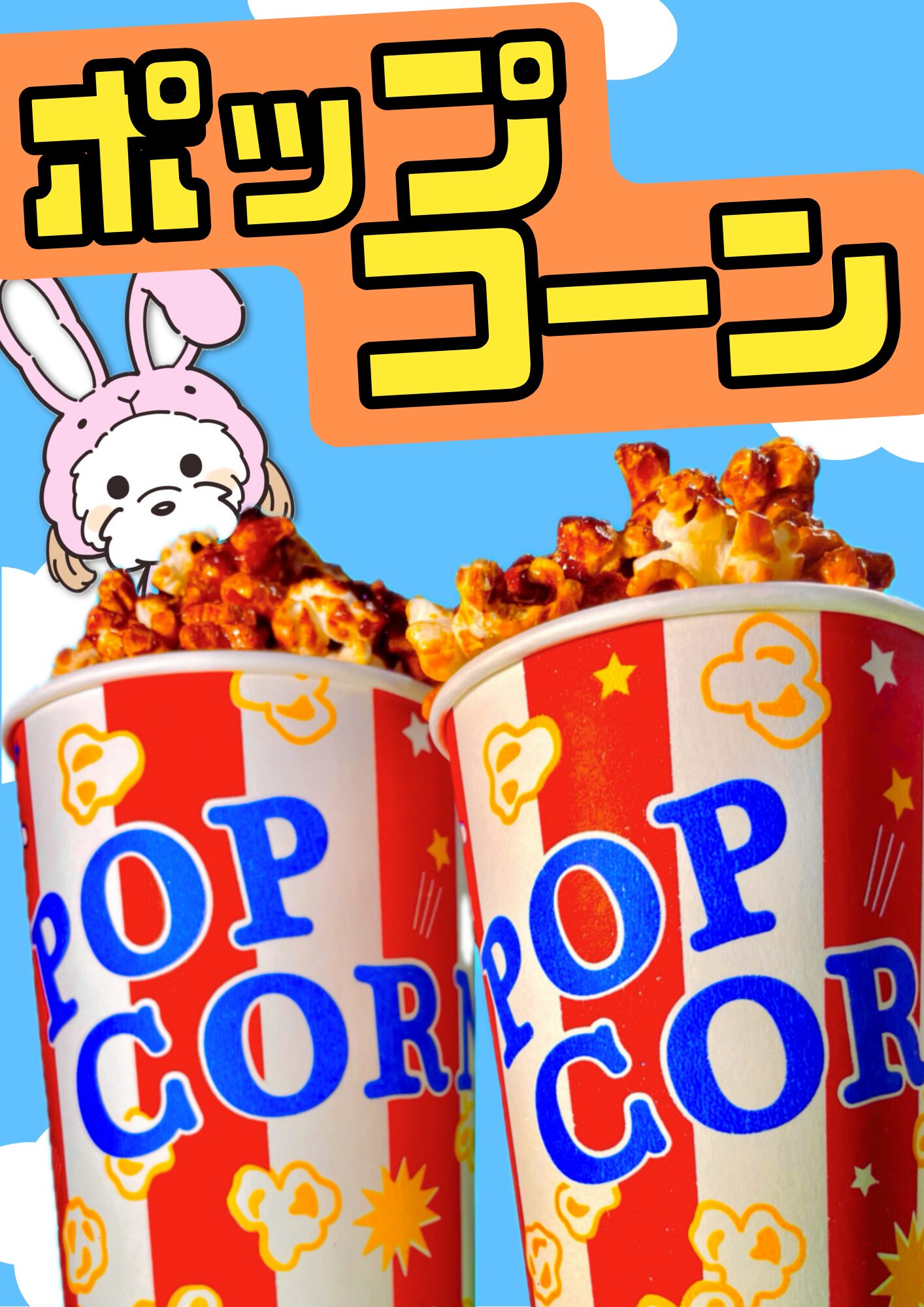- こだわりの配合のフレーバーを使用したポップコーンをご用意しています! シェイクはウサギの耳がついた見た目も可愛い商品です。 青空サイダーはグラデーションが綺麗なラムネ味! お子様から大人の方まで楽しんでいただけるような店舗です!