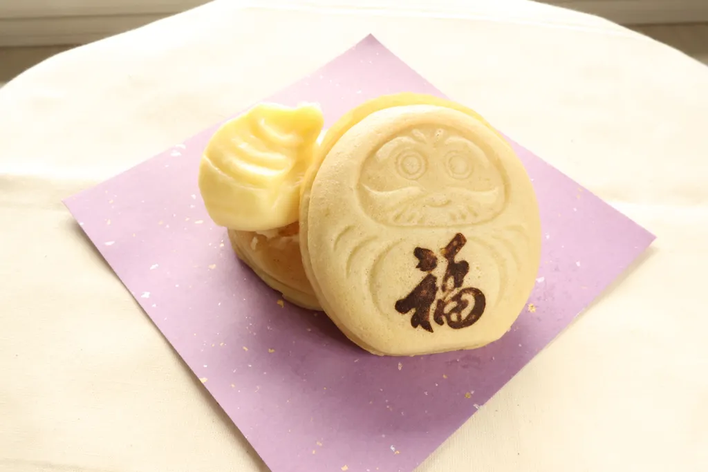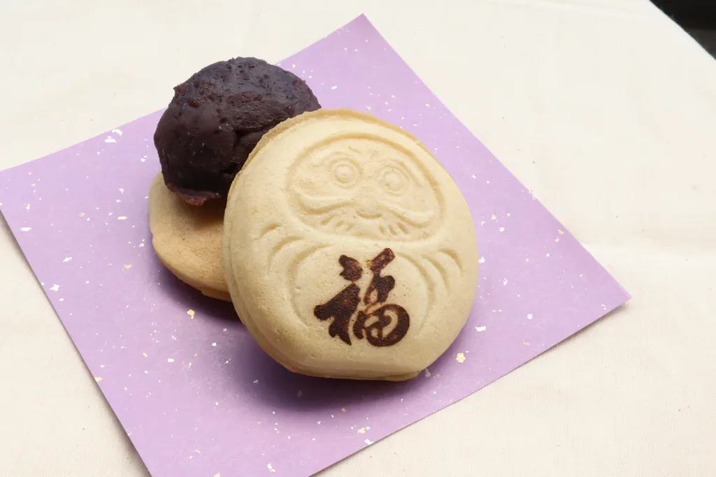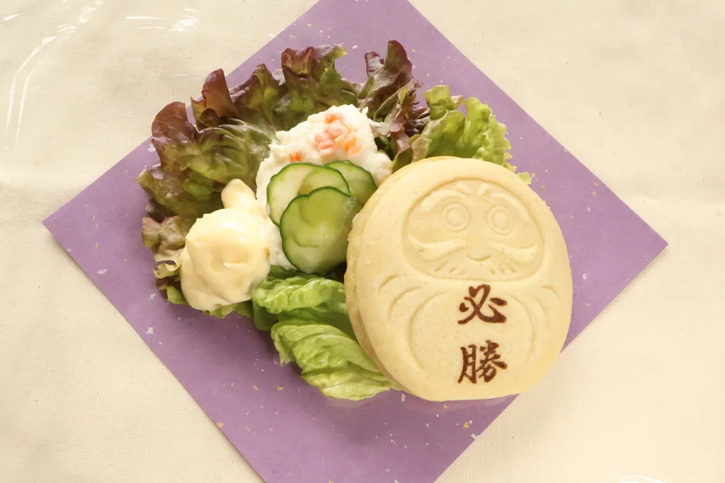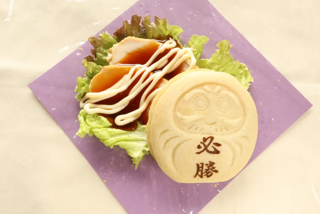 - 縁起だるま型のたい焼きを販売。生地は国産米粉100%使用グルテンフリー。ボリュームのある惣菜系もご用意しております。