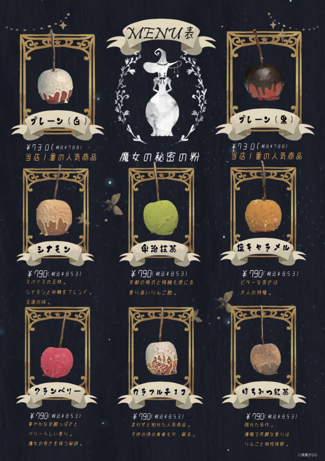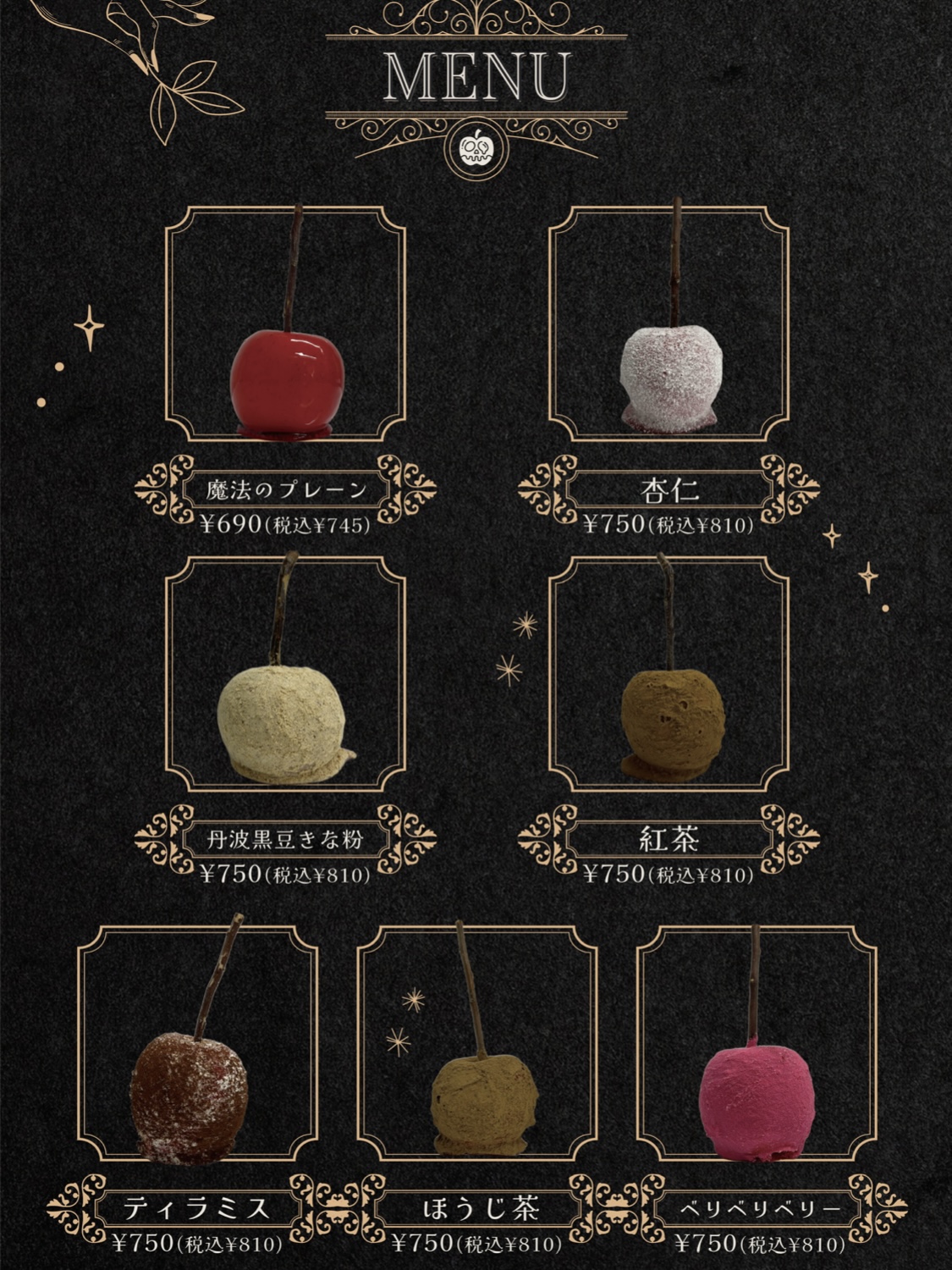 - 日本初 毒りんご専門店 魔女のりんご飴です! りんご飴の上にチョコレートをかけた新感覚のりんご飴! そのままお持ち帰りも、カットしてのご提供もございます! 皆さんは毒林檎をたべたことありますか?魔女の魔法であなたは幸せになれるかも…♡