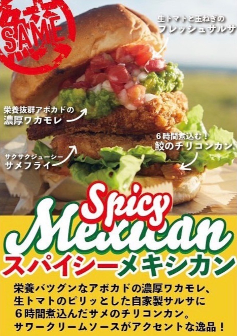- "日本初にして、唯一のサメバーガー専門店です。