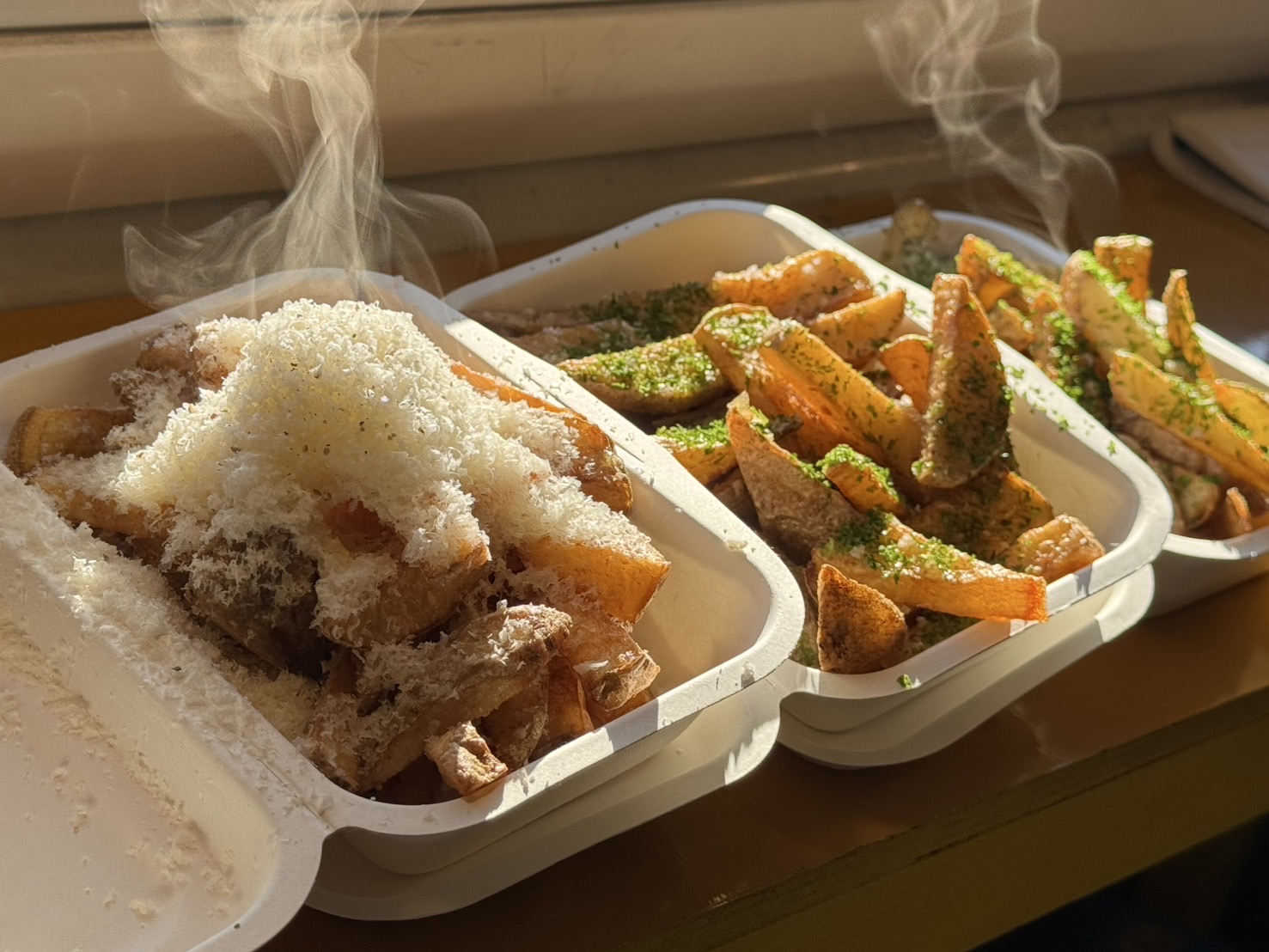 - 米粉の創作フライドポテトは子供も爆食する一品。1番人気の「まこもと竹炭の天然天日塩」は健康に特化したこだわりの味付け。馴染みやすいポテトと国内外の健康に特化した食品を掛け合わせ無理なく楽しく美味しく健康を提供するキッチンカーです。