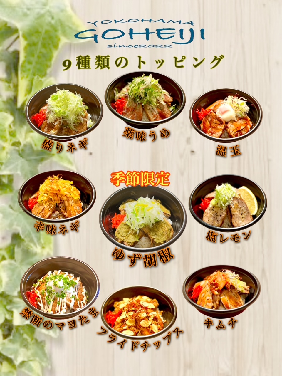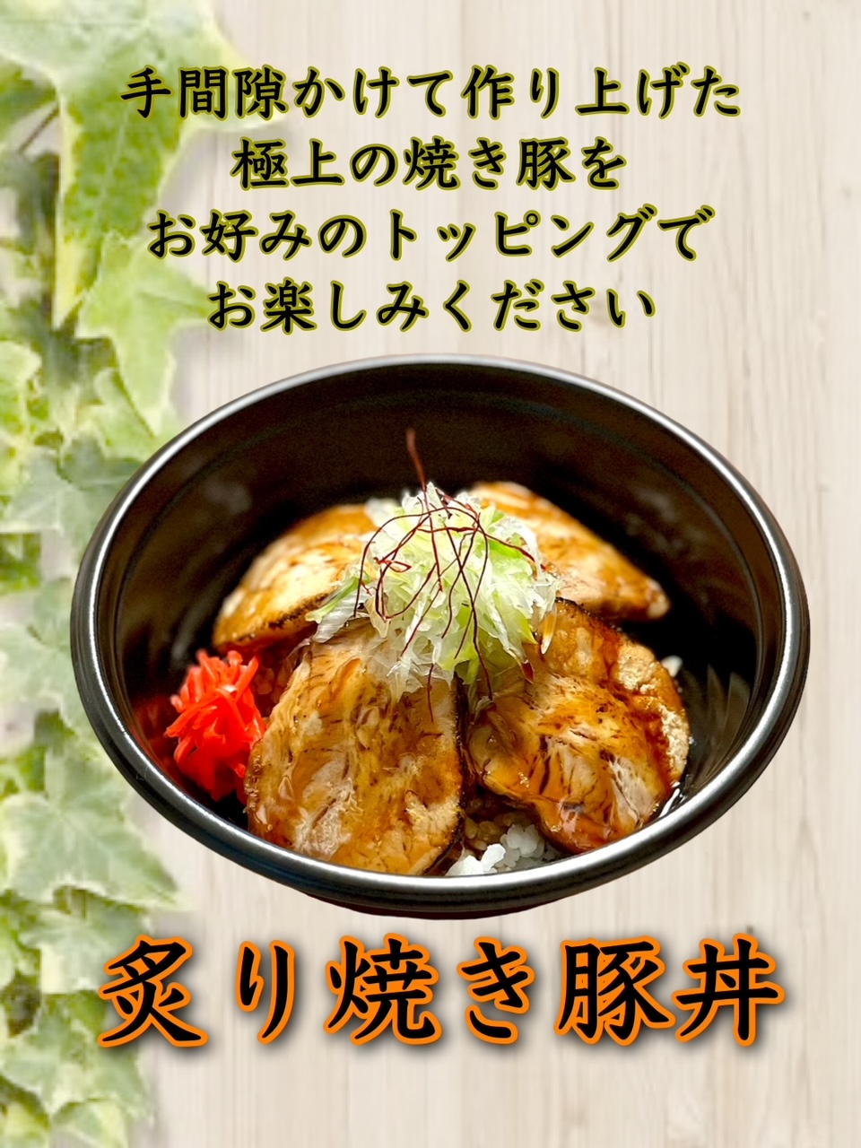 - 自家製の焼き豚をご注文毎に豪快に炙ってご提供します。豊富なトッピングでお楽しみください。